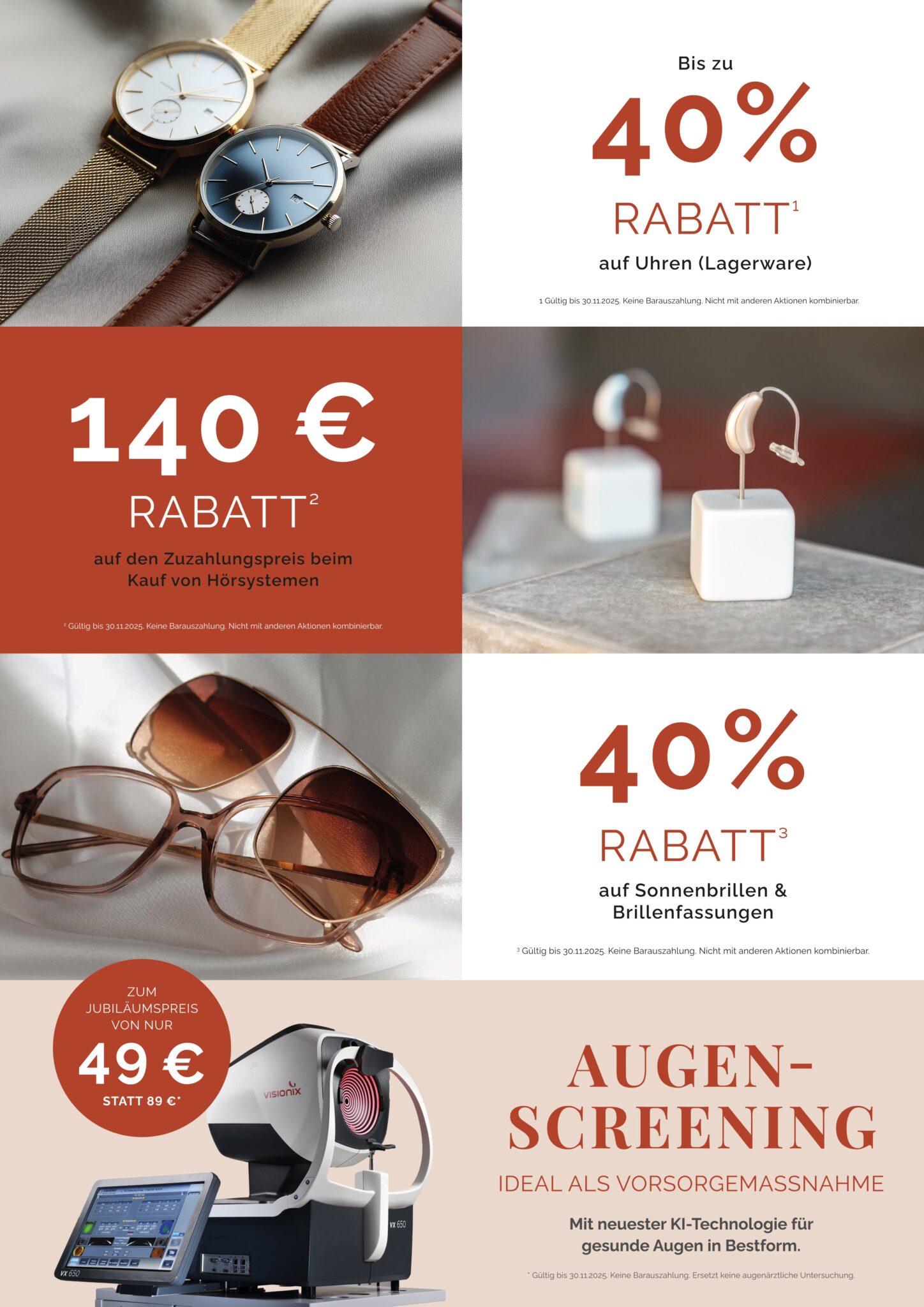 Auf über 330 Quadratmetern finden Sie bei uns eine unvergleichliche Auswahl an Brillen, Kontaktlinsen, Uhren, Trauringen, Schmuck und Hörgeräten.